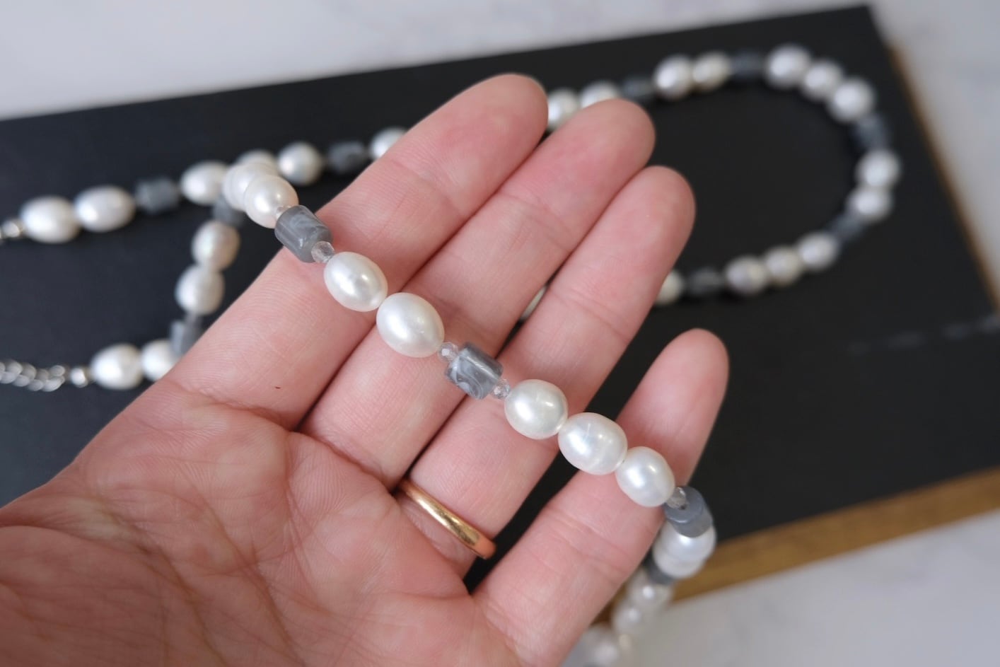 perl necklace <gray >